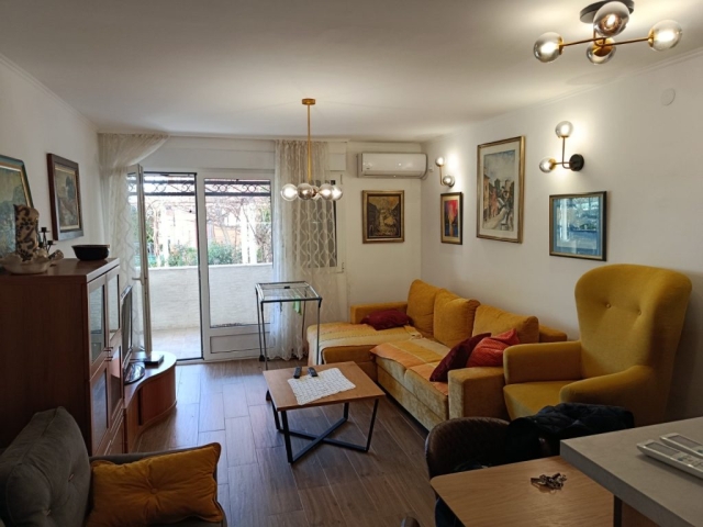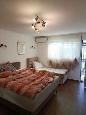 Sastoji se od: dnevnog boravka sa kuhinjom i trpezarijom, spavaće sobe, kupatila i terase sa dvoristem.